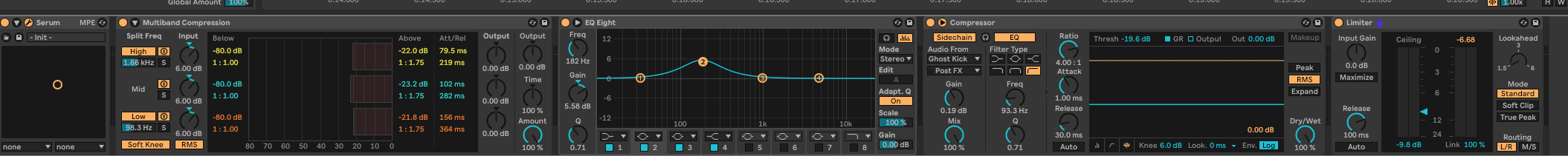 - Compressor: Side-Chaining to ghost kick