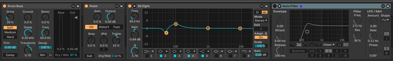- Mehr High Band Energy geben, indem “Treble” hochgedreht wird. Dadurch bekommt die Kick mehr cut-through im MIx